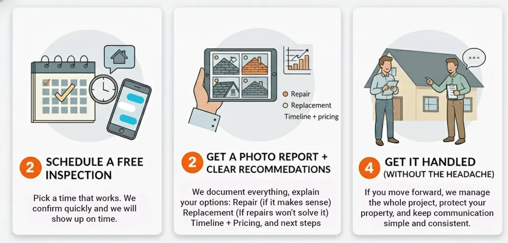 We’ll give you clear options based on what your roof actually needs — including repair-first recommendations when that’s the smartest move. Financing options may be available.